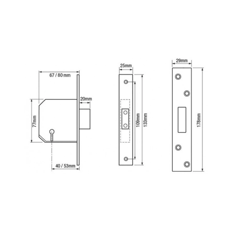 Conforming to BS 3621:2007 requirements, this 5 Lever High-Security Deadlock is a British Standard lock recommended for all external doors as it provides a high level of security. The lock is operated by turn of key and is a Chubb 3G114E Retro-Fit replacement.