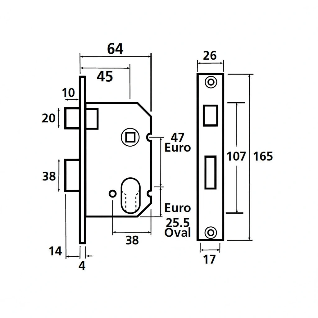 64mm Dual Profile Sash Lockcase With 45mm Backset