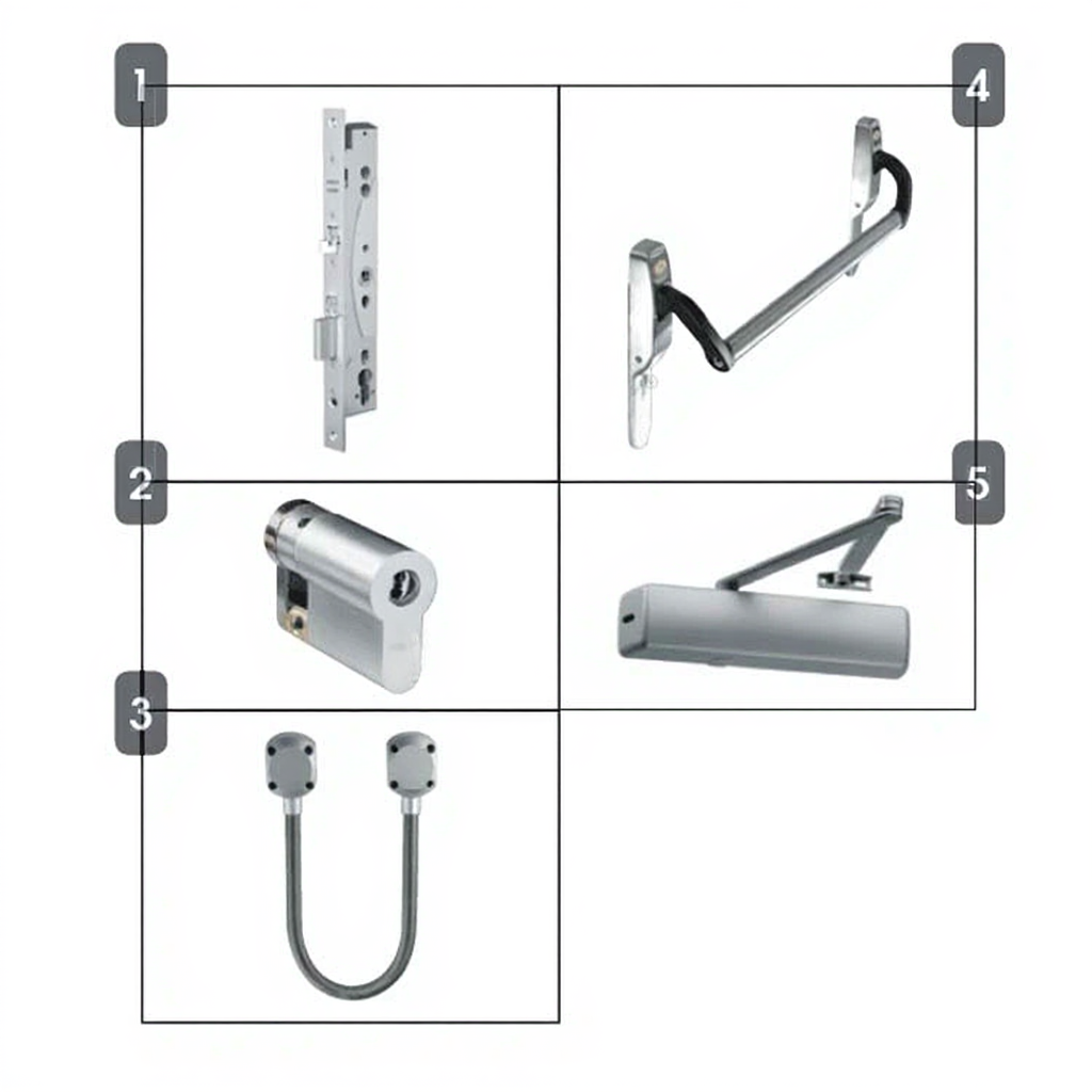- 4. PBE011-EL460 ABLOY panic bar with 1/2 handle set