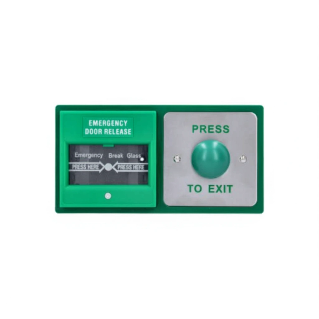 This double exit device includes both a stainless steel green dome Request to Exit (RTE) push button and an emergency breakglass. The double-gang back-box means the unit can be installed quickly and easily, ensuring an exact fit for a tidier finish.