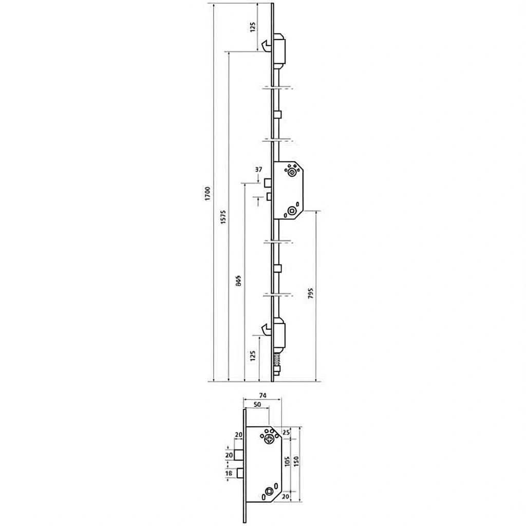2 Hookbolts, Latch & Deadbolt Function Mutli-Point Lock - LH.