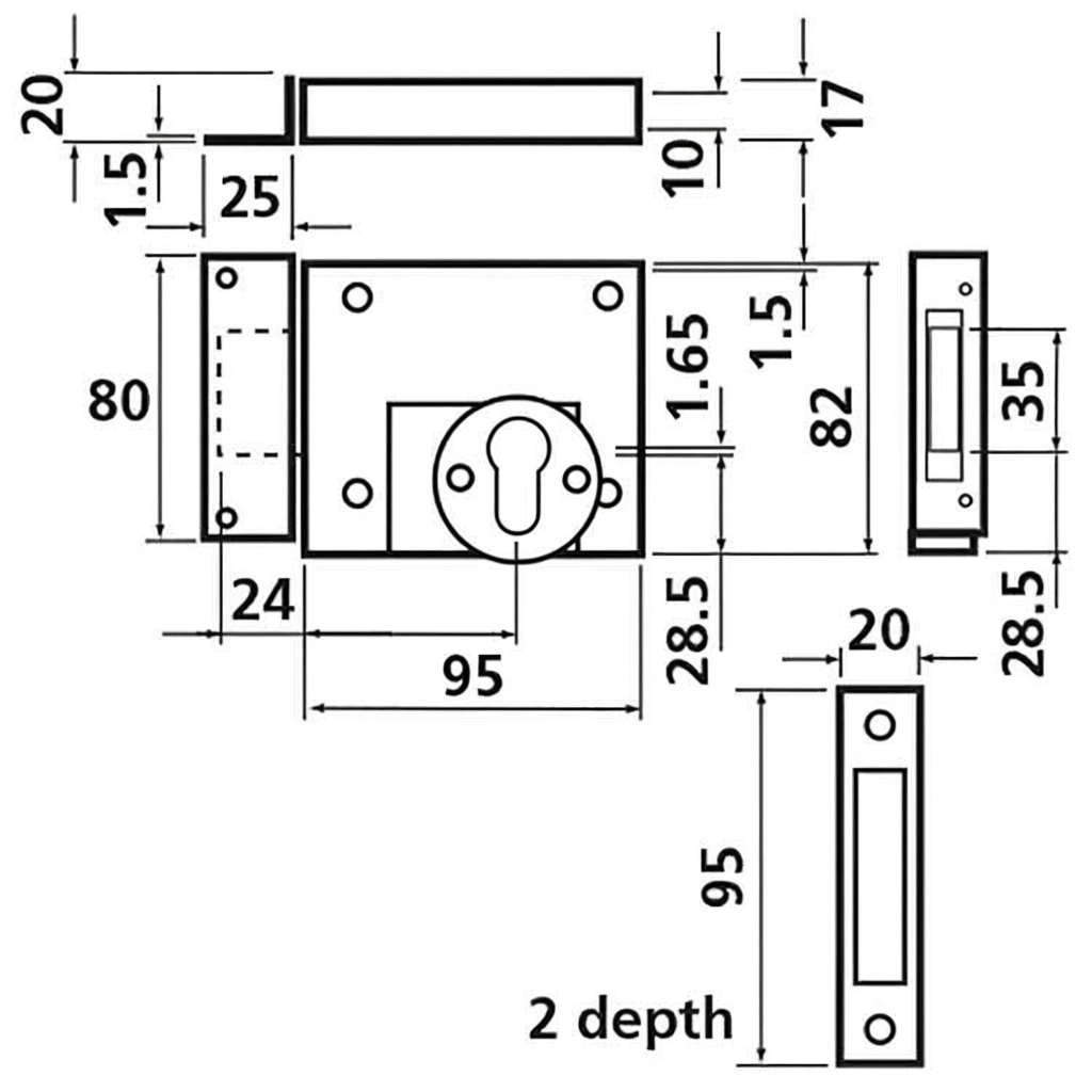 Gate Lock No.49 - Rim Lockcase Euro Profile 60mm Backset