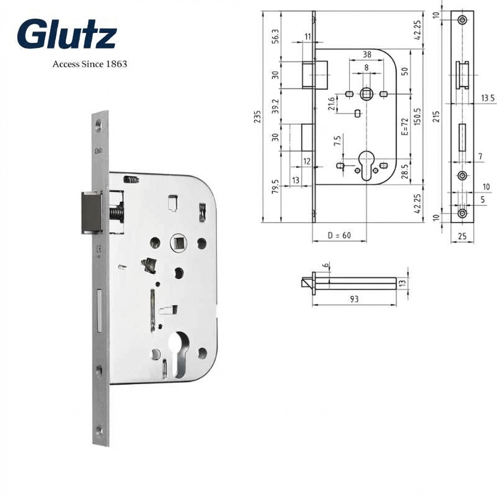 Glutz 1052 Mortice Sash Lock