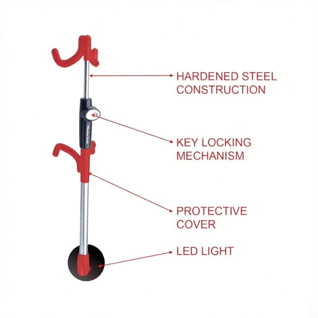 MAXIMUM SECURITY: with quad hook design for advanced security ; made of hardened steel for maximum resistance to cutting and hammering ; flashing Led light in case of intrusion.