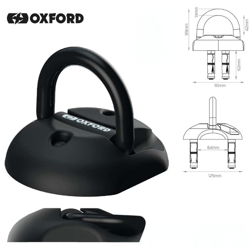 When used as a ground anchor, it is ideal for high traffic areas, as it can be ridden/driven over when the shackle is laid flat.